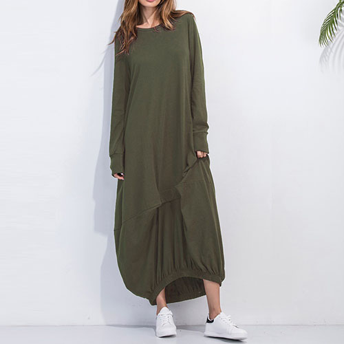 Easy to achieve a chic style as well as a comfortable wearing feeling with this maxi dress. Solid