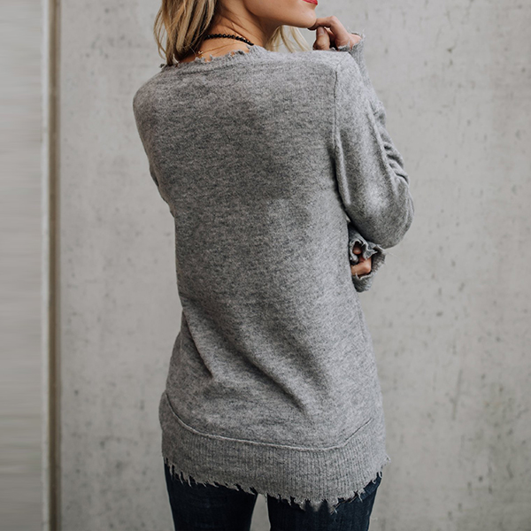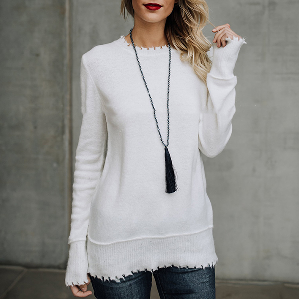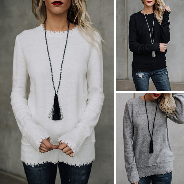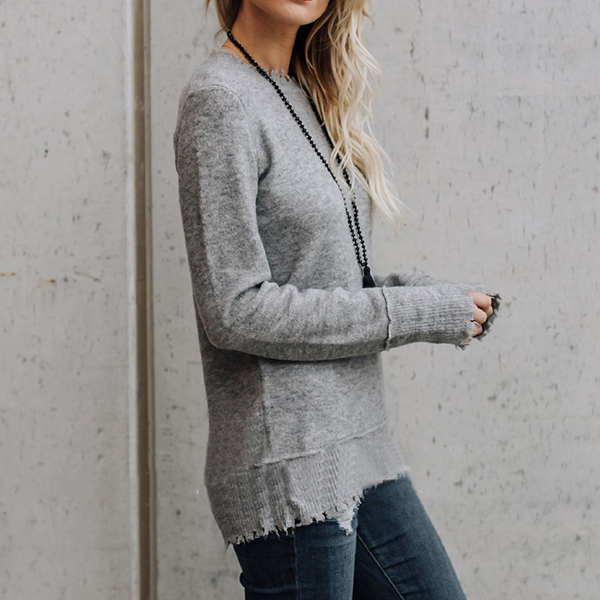 sleeve,round neck and a fit silhouette,simple and classic. The most attractive design of this piece is the frayed