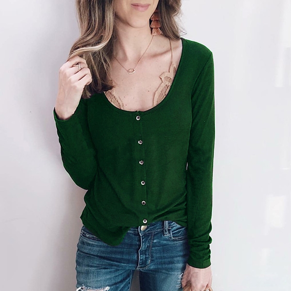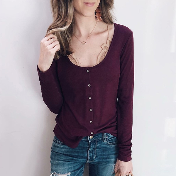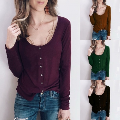 with long sleeve,round neck and front buttons design,this simple yet stylish t-shirt can offer you a comfortable