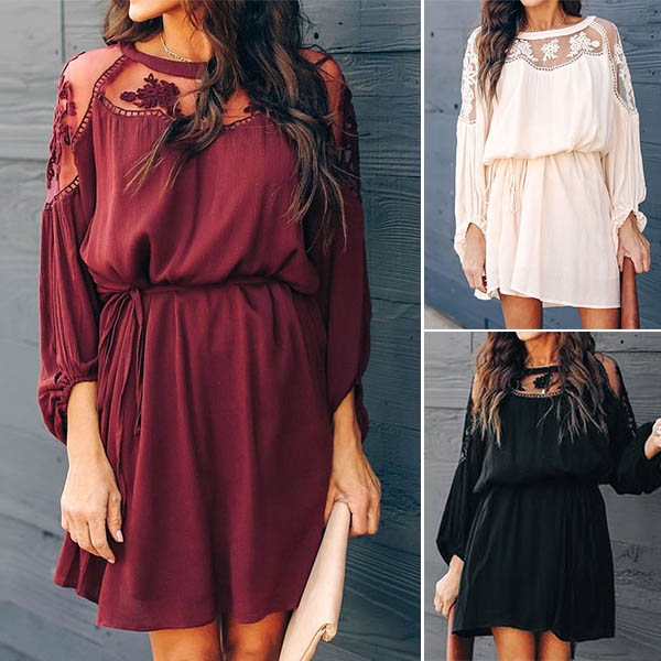 Solid color style,with long sleeve,round neck and gauze spliced design,this dress bears stylish flavor.