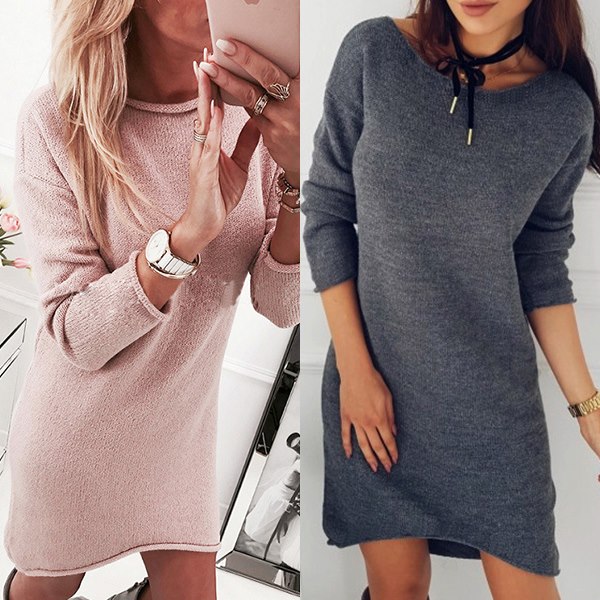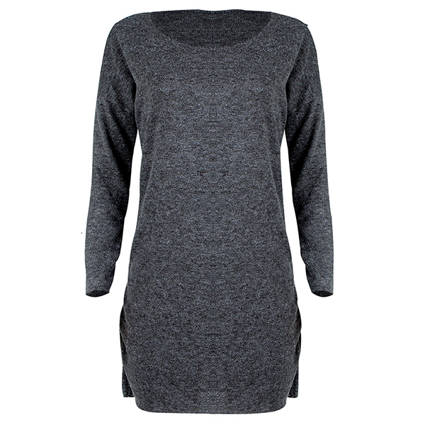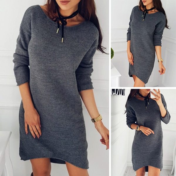 Enrich your wardrobe ensemble by adding this knit dress. Solid color style,finished with long sleeve,round neck,high-low