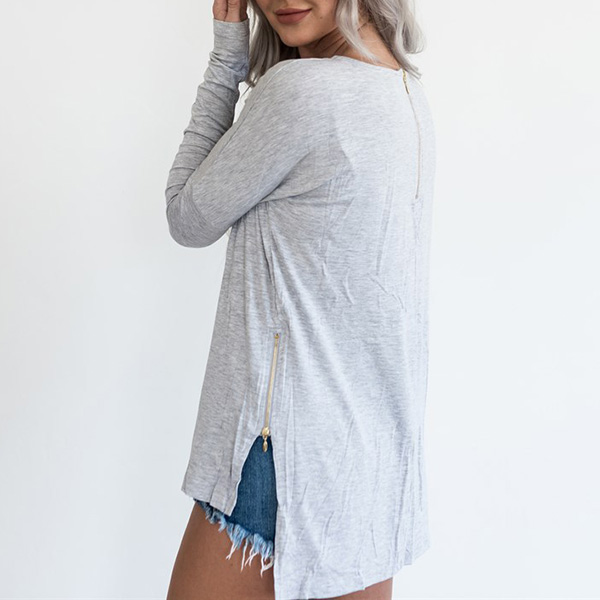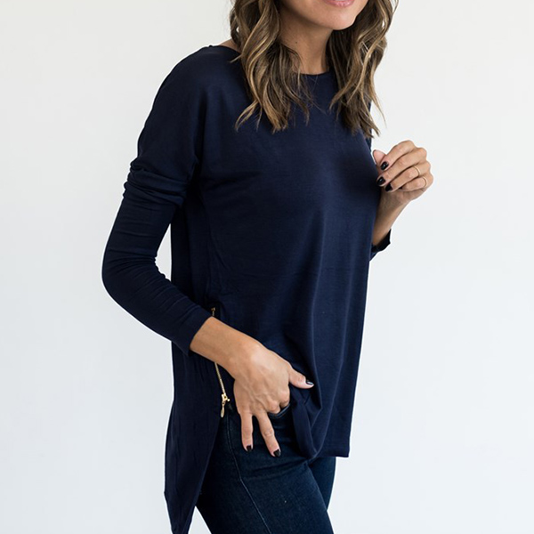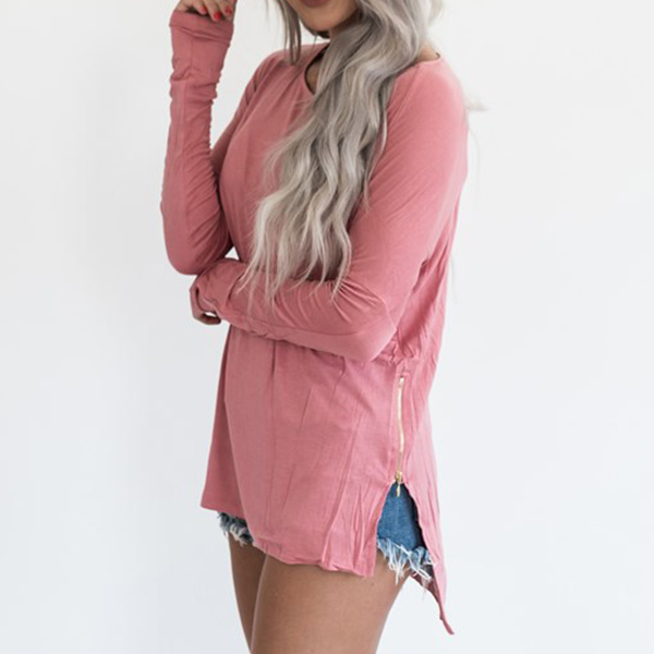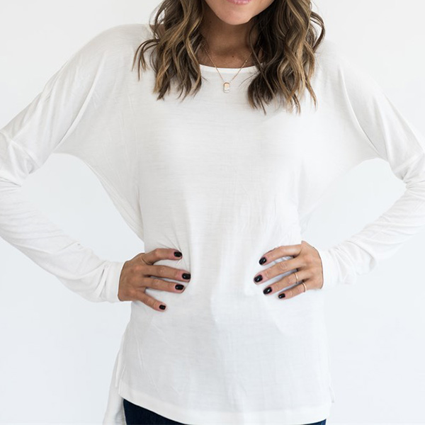 This t-shirt is crafted from soft and breathable fabric,with long sleeve,round neck and a high-low hem design,