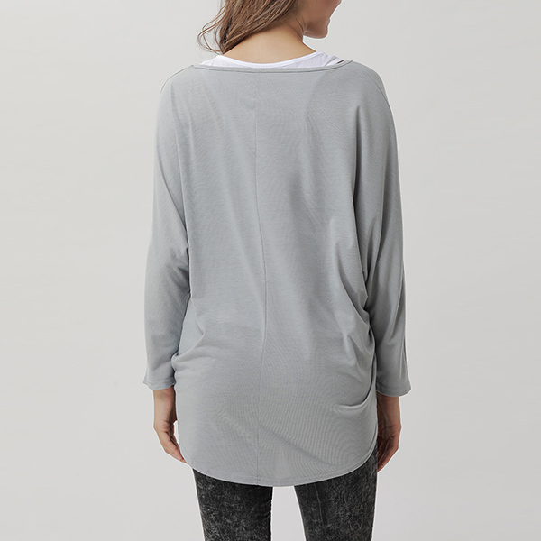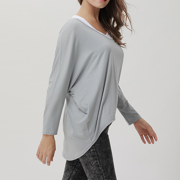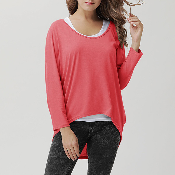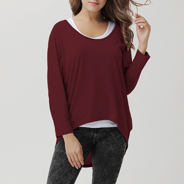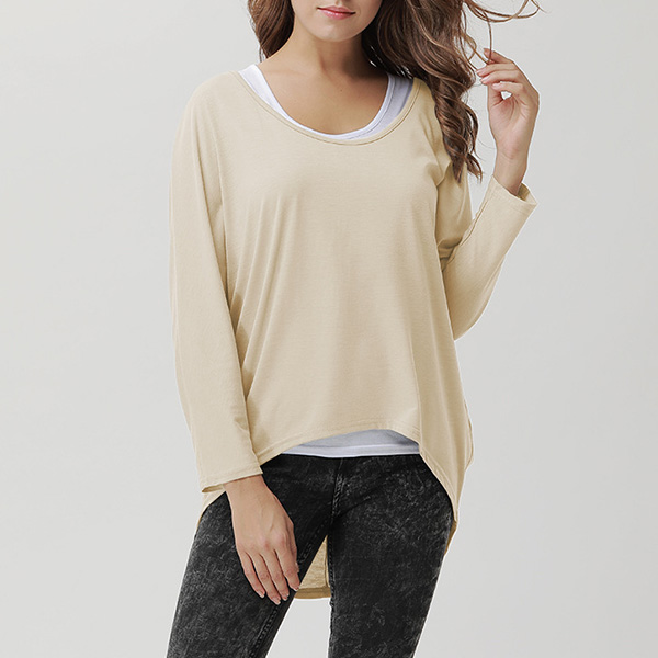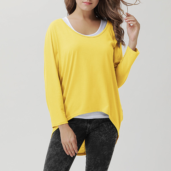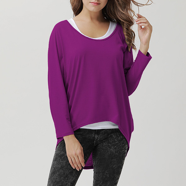 Solid color style,finished with long sleeve,round neck and a high-low hem,this t-shirt can offer you a