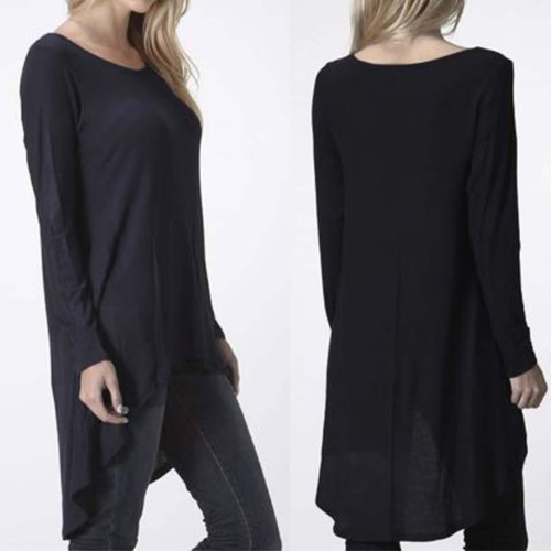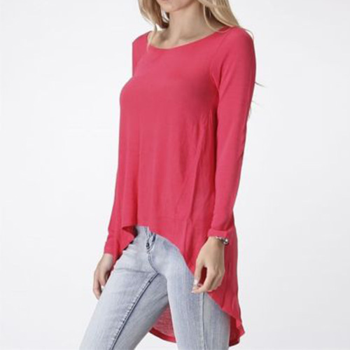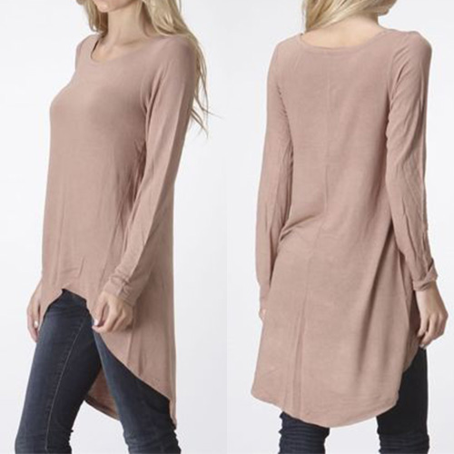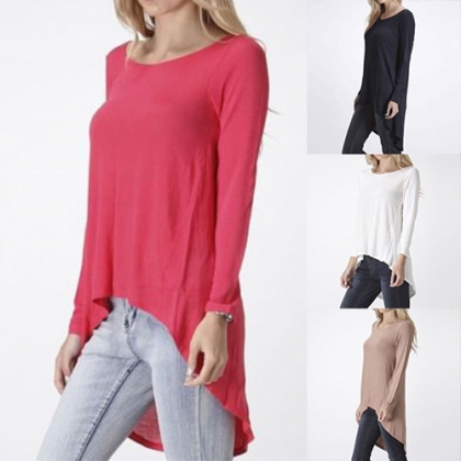 an all-day comfort. Outfitted with long sleeve,round neck and high-low hem design,chic and stylish.