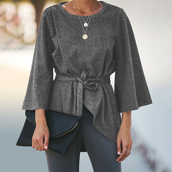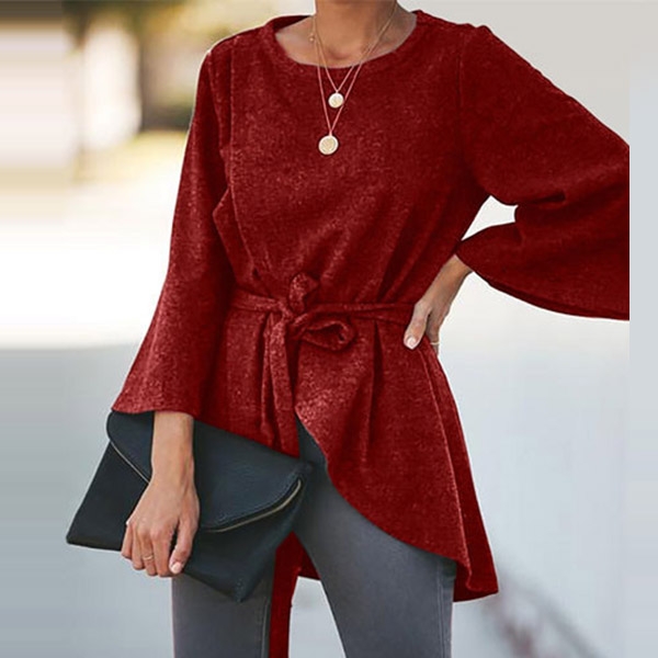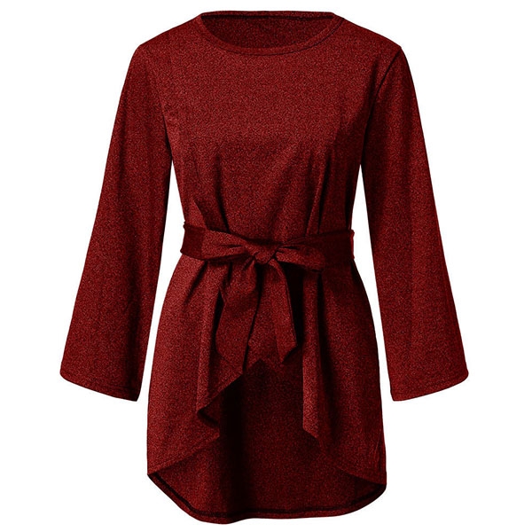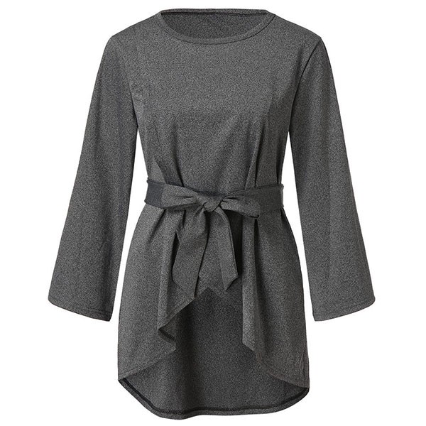 round neck and a high-low hem,simple,chic yet stylish. Comes with a waist strap design will give you a