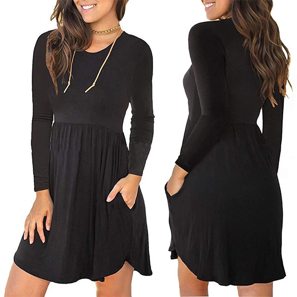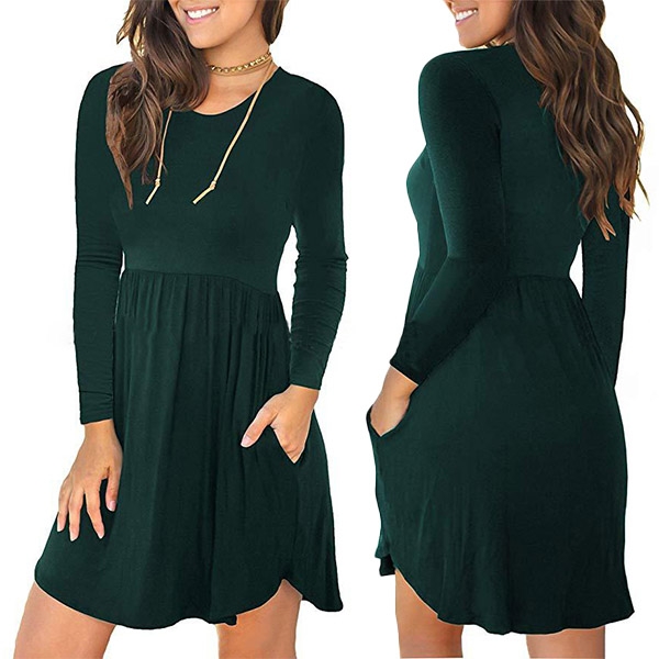 with a solid color,finished with long sleeve,round neck and high waist design,this dress is sure to