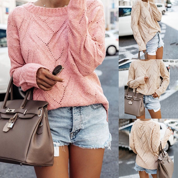 Boasts a solid color,with long sleeve and round neck design,the hollow out details will add its charm.