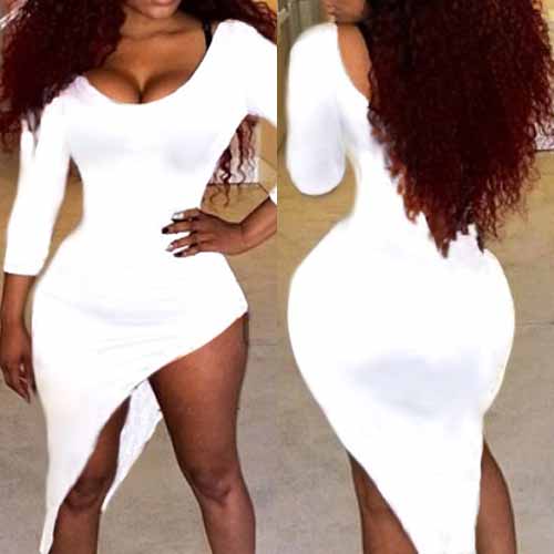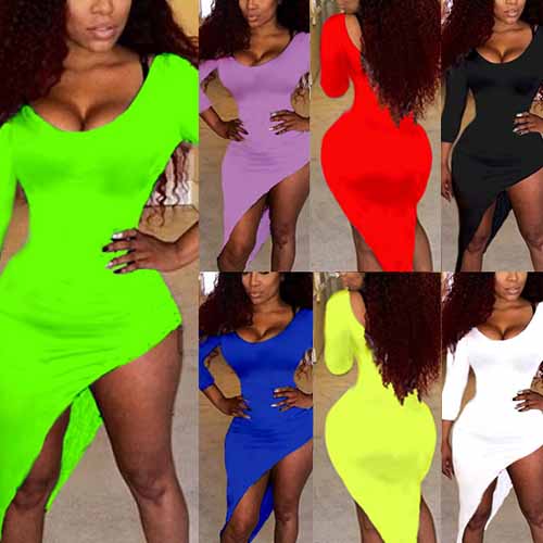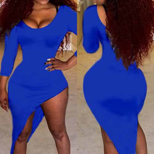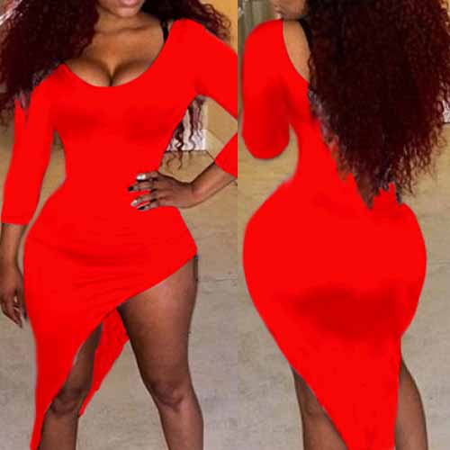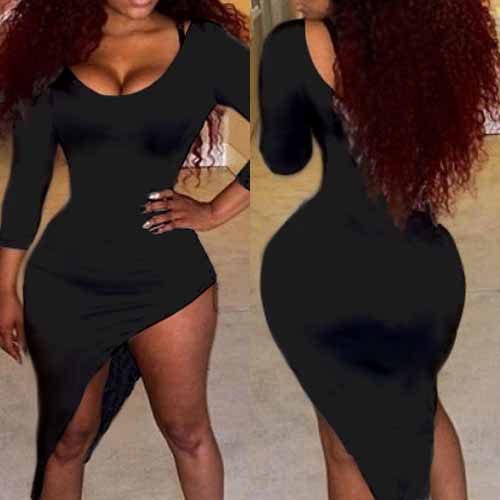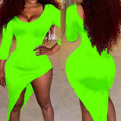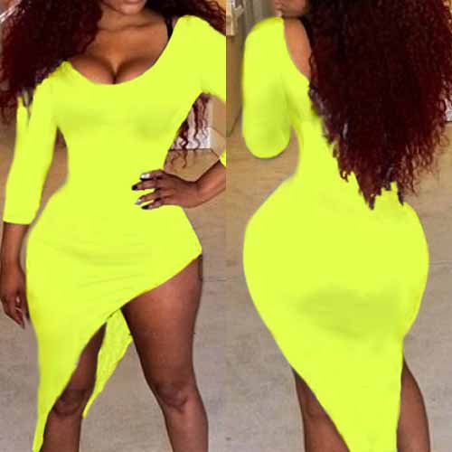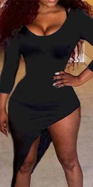 This dress features solid color style,completed with long sleeves,round neckline and irregular hem design,