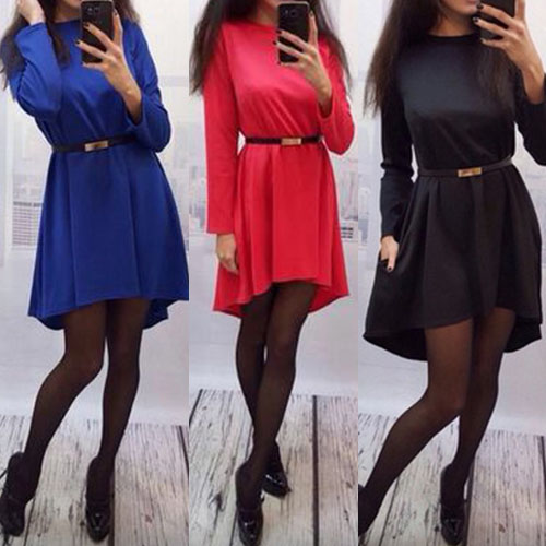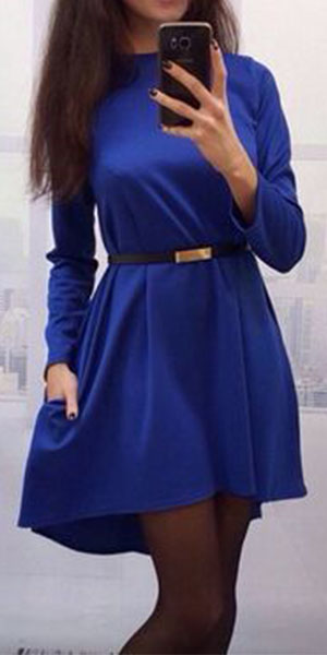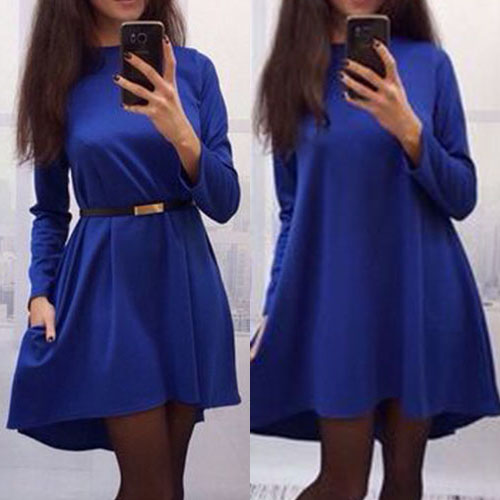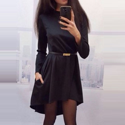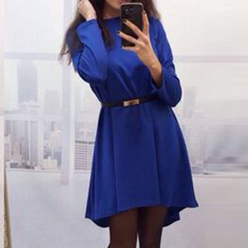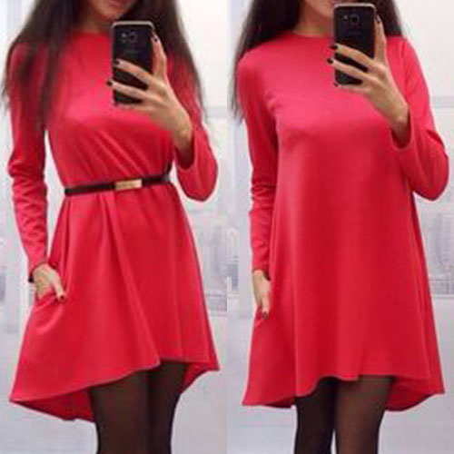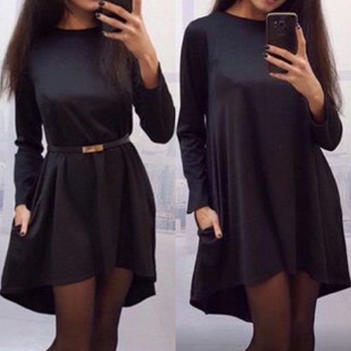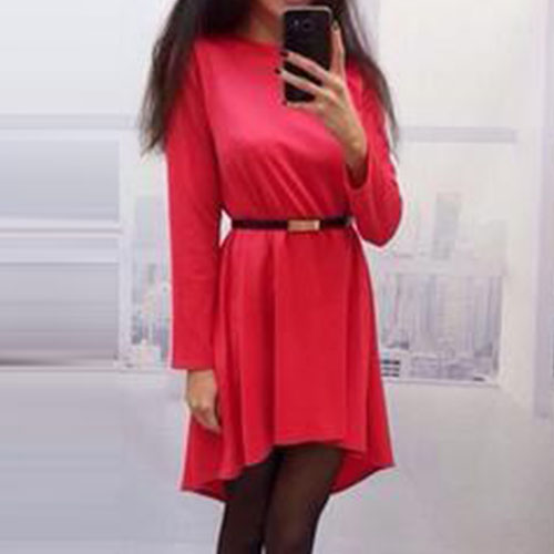 Solid color style,with long sleeve,round neck and irregular hem design,chic and refined.