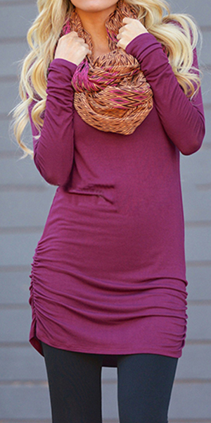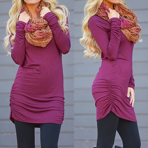 This dress features solid color style,with long sleeve,round neck and irregular hem design,