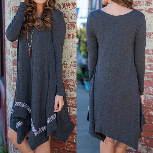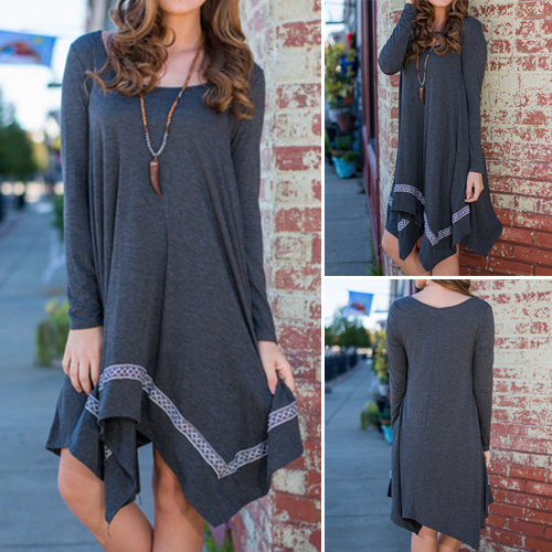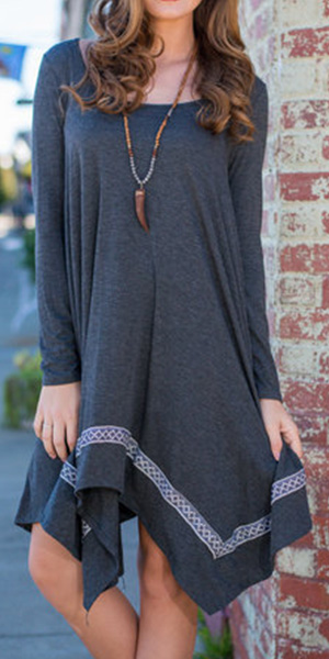 In some sunny days,strolling on your town with this dress. Solid color style,outfitted with long sleeve,