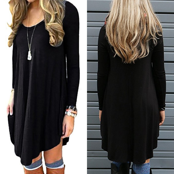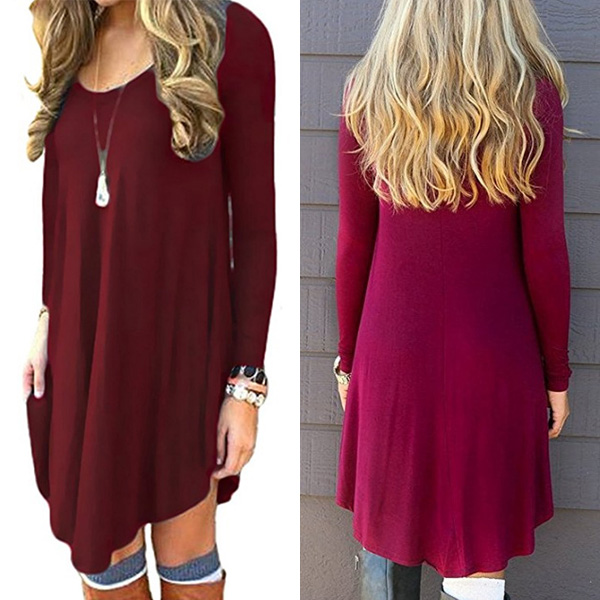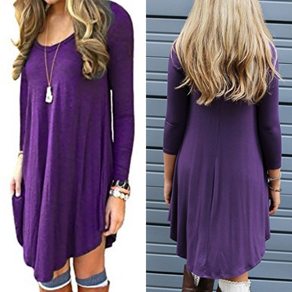 we suggest you this dress. Solid color style,finished with long sleeve,round neck,irregular hem and a