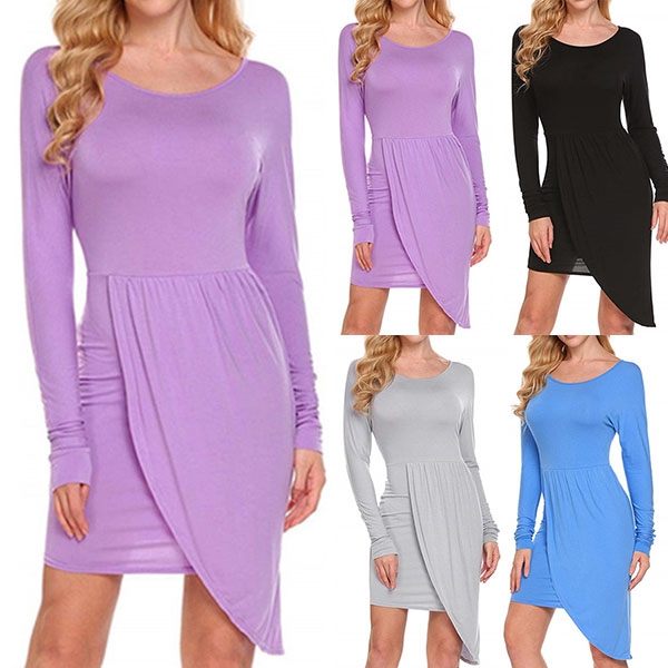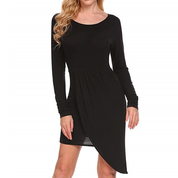 Fashion Solid Color Long Sleeve Round Neck Irregular Hem Dress