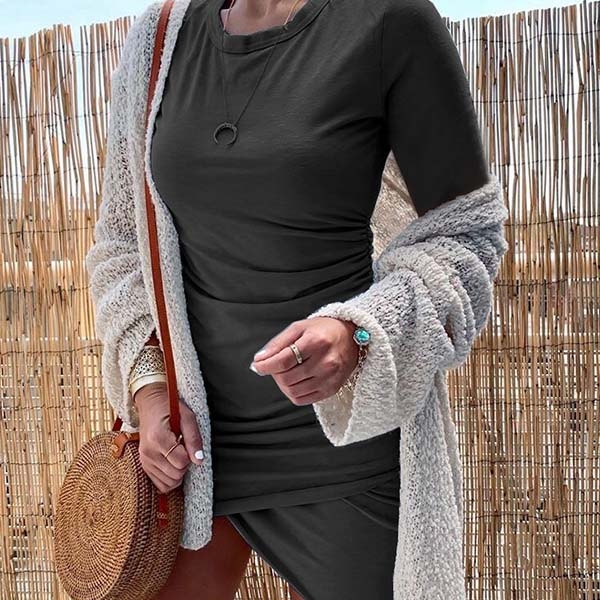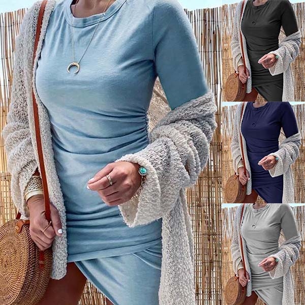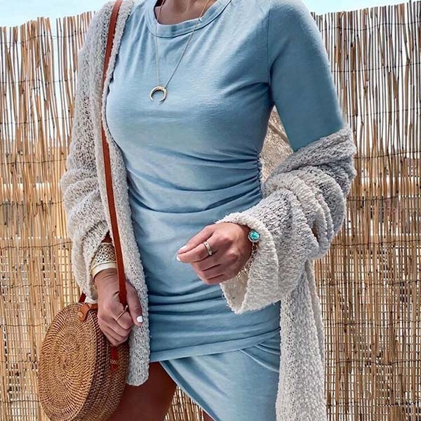 Solid color style,the fit silhouette design can showcase your slender figure,while the irregular