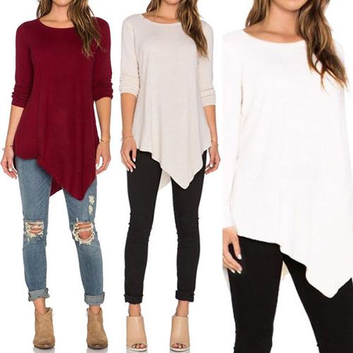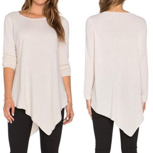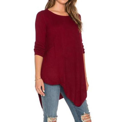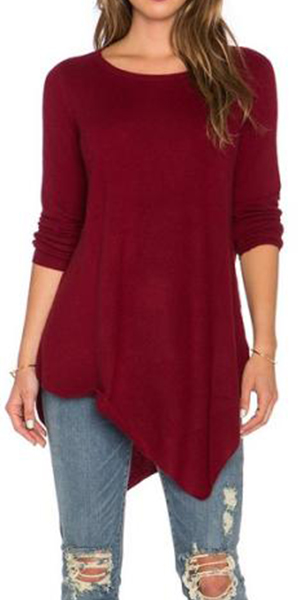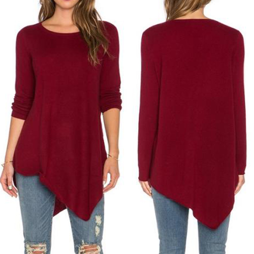 This dress features solid color style,with long sleeve,round neckline and irregular hem design,
