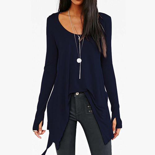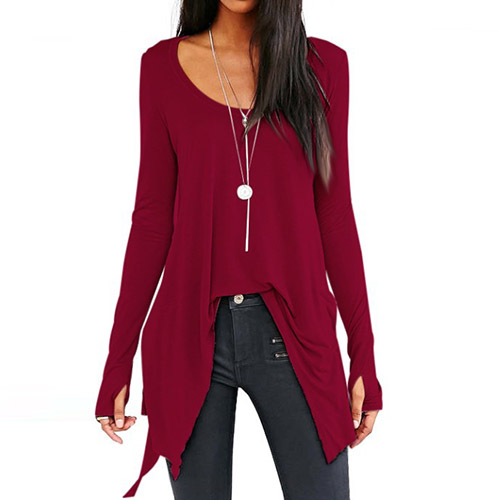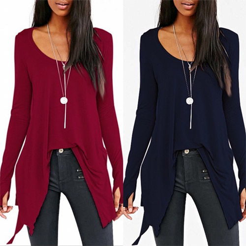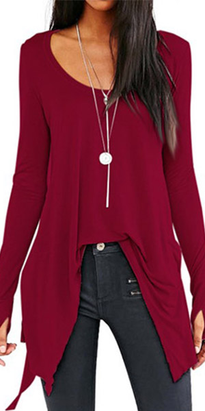 cozy fabric can keep you comfy all day. Outfitted with long sleeve,round neck and irregular hem