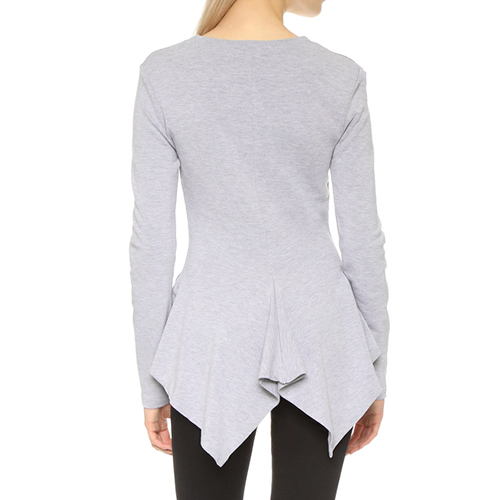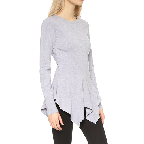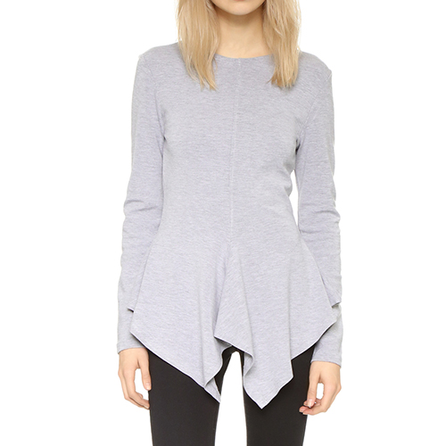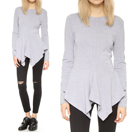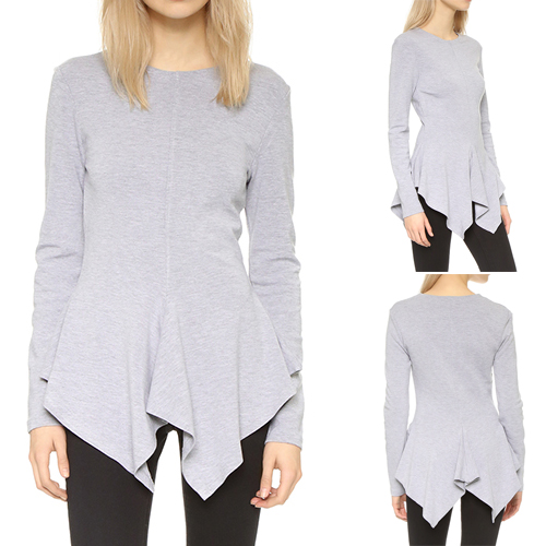 Solid color style,with long sleeve,round neck and irregular hem design,simple,chic and stylish.