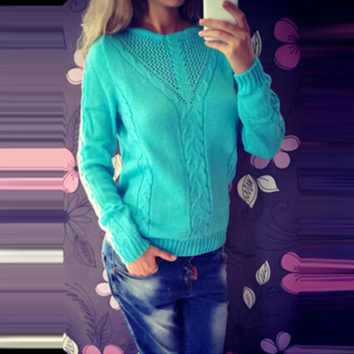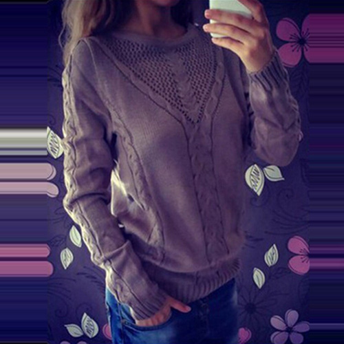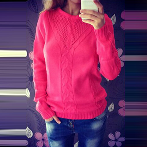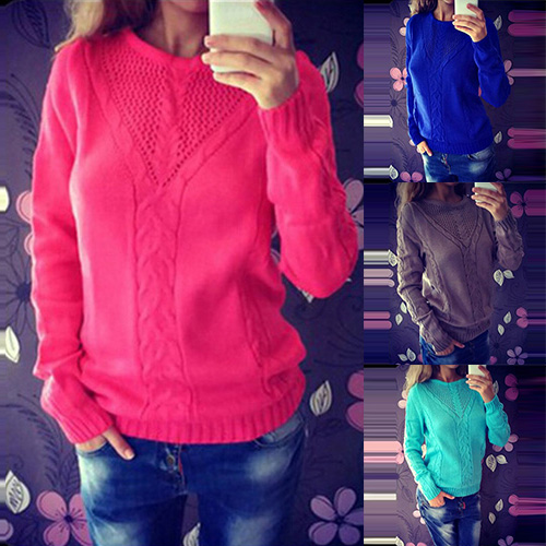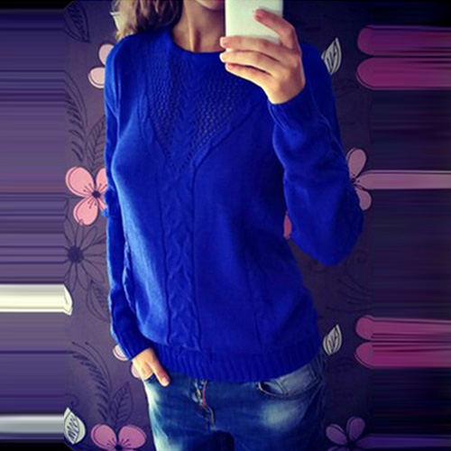 Fashion Solid Color Long Sleeve Round Neck Knit Sweater