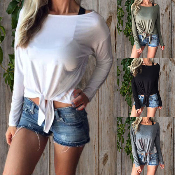 with long sleeve and round neck design,this t-shirt can give you an all-day comfort. Plus,the hem with knotted design