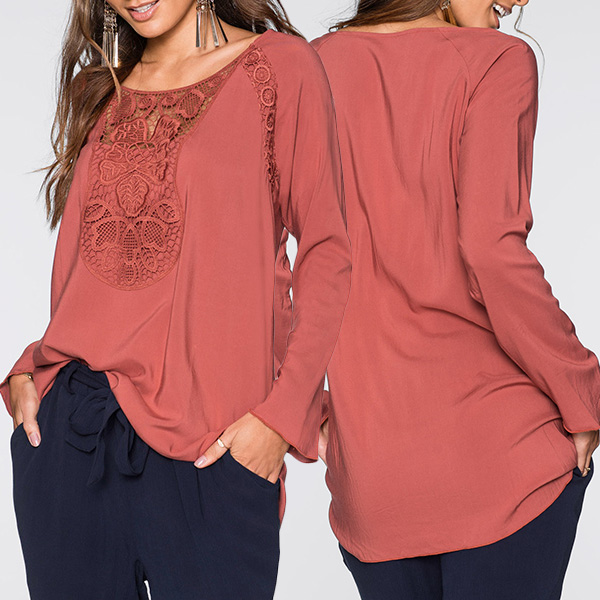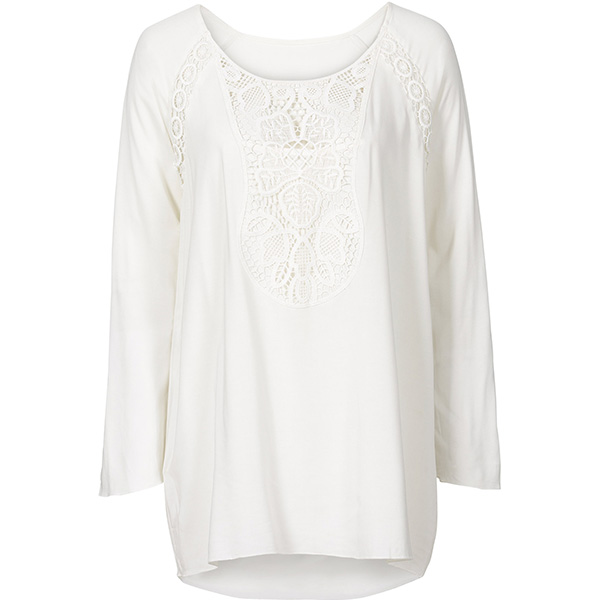 round neck,a loose silhouette and lace spliced details,this t-shirt would be your perfect partner on those casual days.