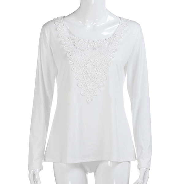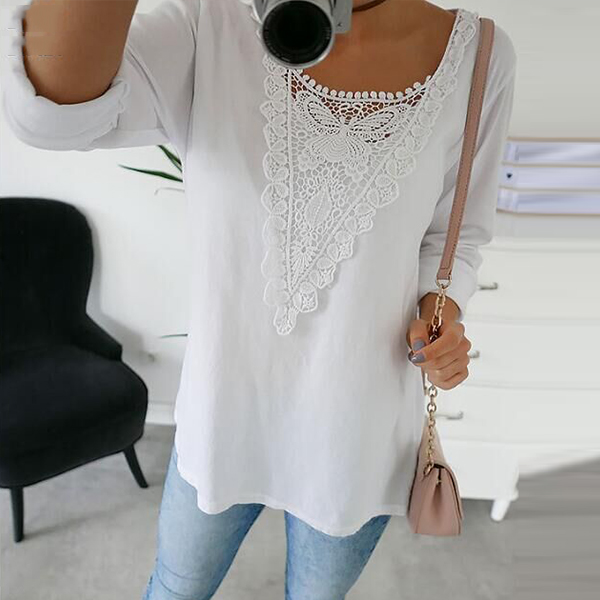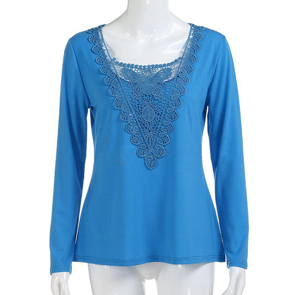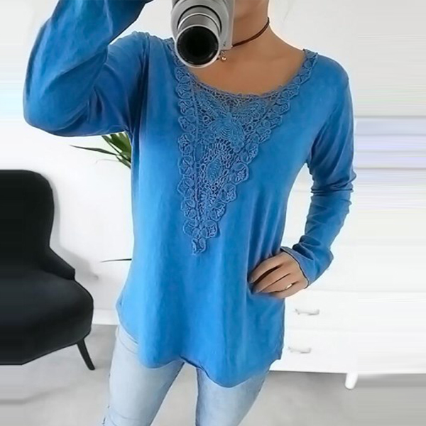 breathable fabric,accompanied with long sleeve,round neck and lace spliced design,this t-shirt can make you