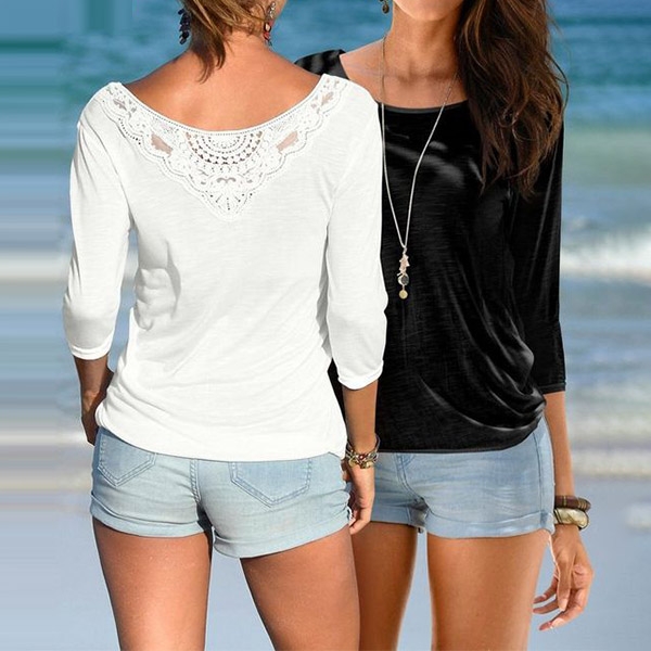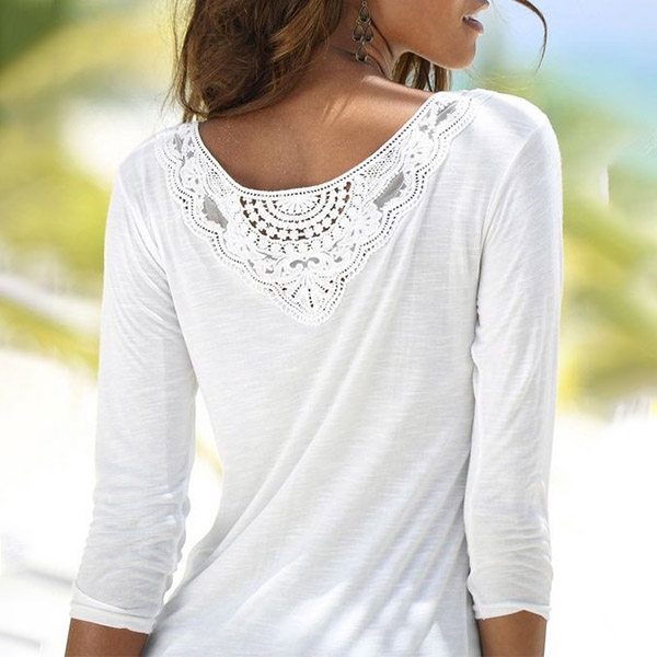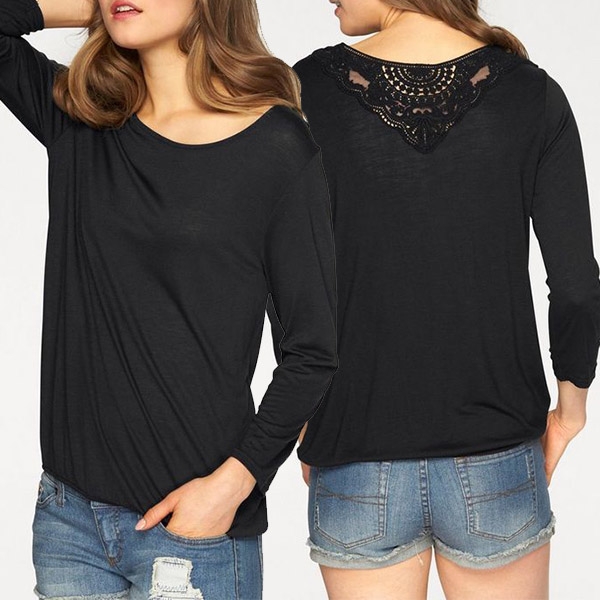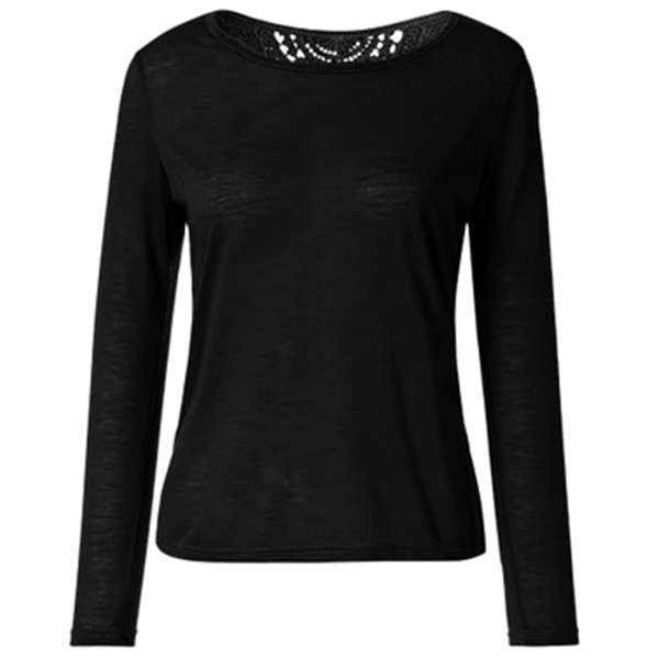Finished with long sleeve,round neck and lace spliced details,this t-shirt can be matched with different