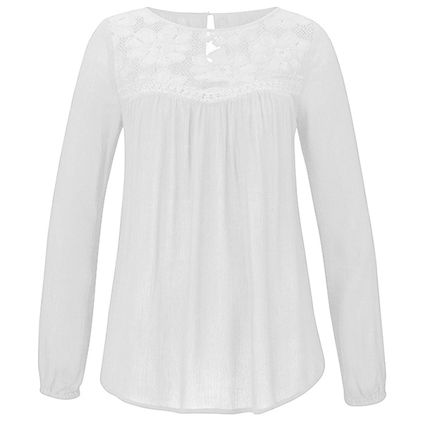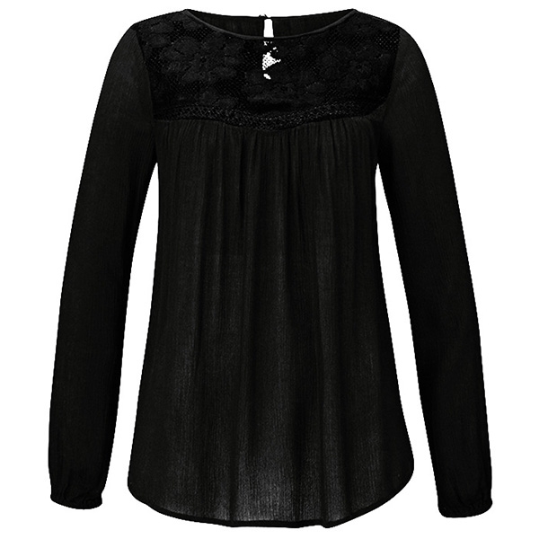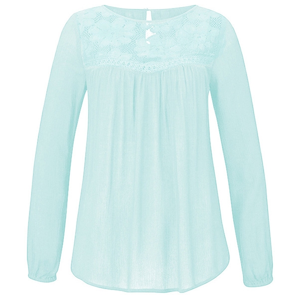 ensemble. Solid color style,with long sleeve and round neck design,the lace spliced design will enrich