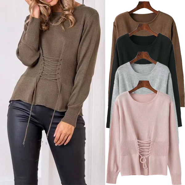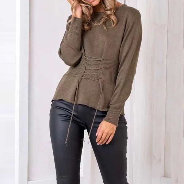Solid color style,with long sleeve and round neck design,simple,warm and stylish. Moreover,its lace-up design