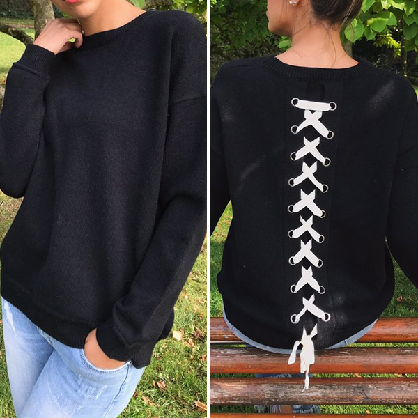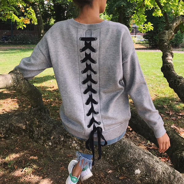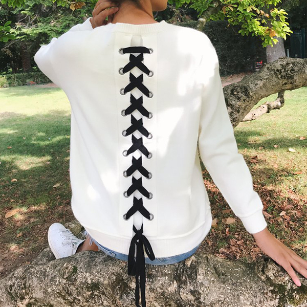 silhouette,this sweatshirt can keep you comfy all day. The most distinctive design? Its lace-up design at back side makes