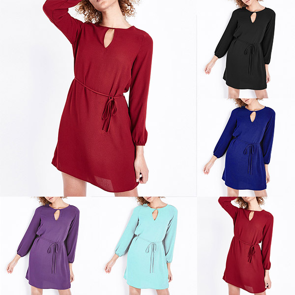 That's why we suggest you this dress. Solid color style,with long sleeve,round neck and a loose silhouette,