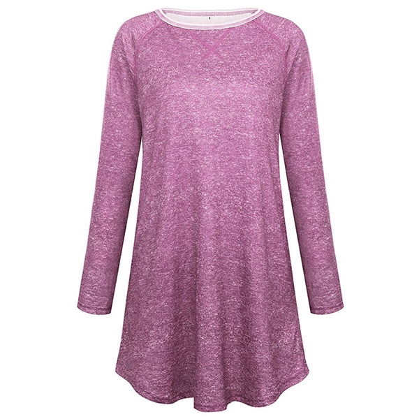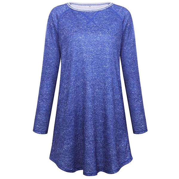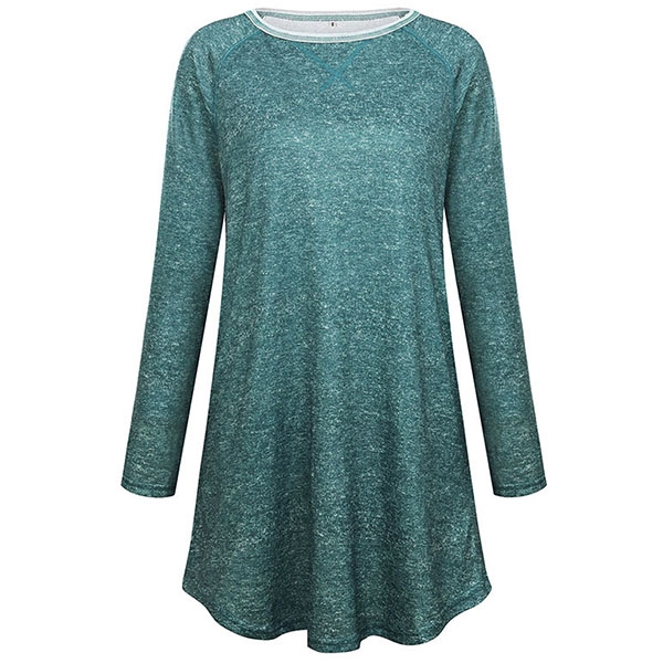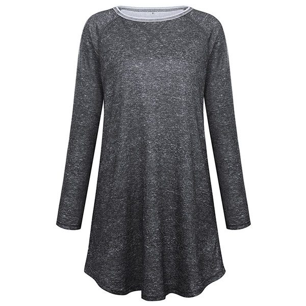 It is finished with solid color,long sleeve,round neck and a loose silhouette,the front slanted