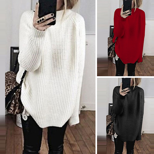 Fashion Solid Color Long Sleeve Round Neck Loose Sweater