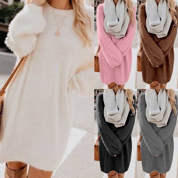 This sweater dress would be your perfect choice when the days get cold. It comes with a solid color,simple,