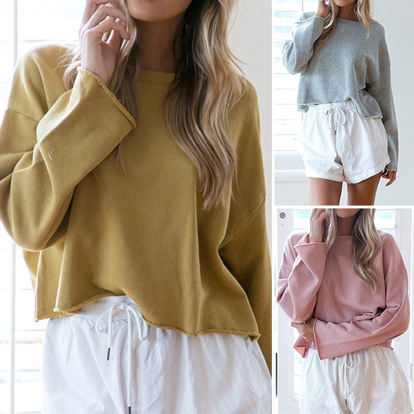 Solid color style,designed with bat sleeve,round neck,breathable fabric and loose silhouette,this sweatshirt of