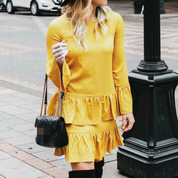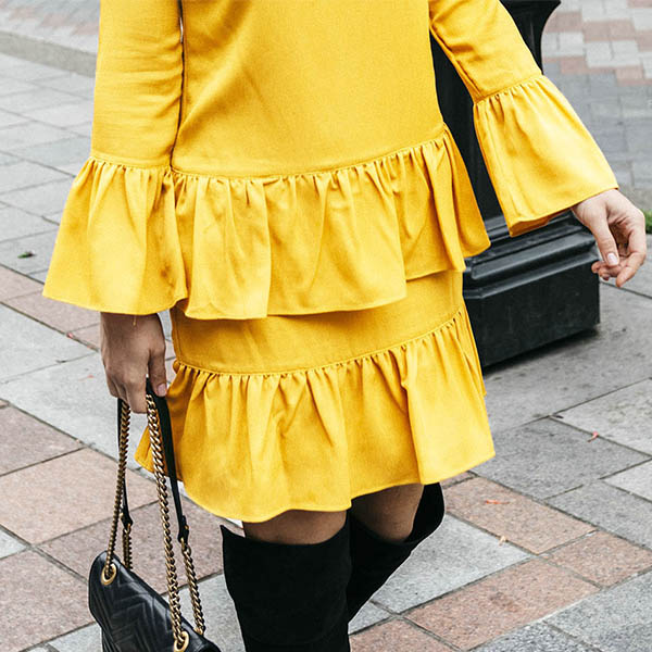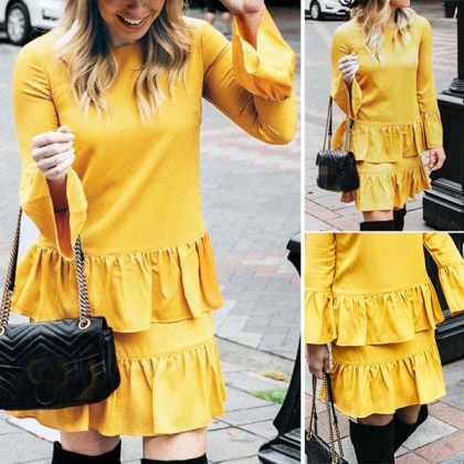 This dress comes with a bright yellow tone,which can easily help you win more eyes. Finished with long