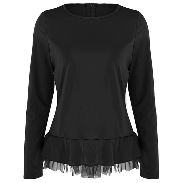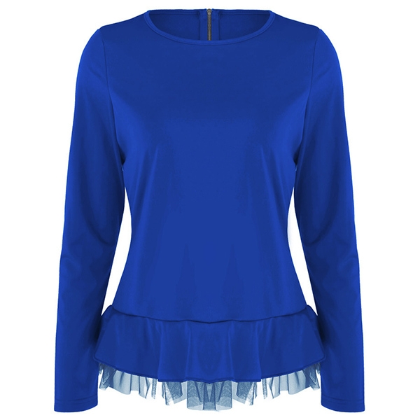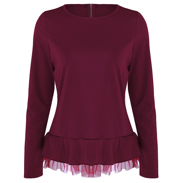 Boasting a solid color,with long sleeve,round neck and ruffle hem design,this wonderful piece