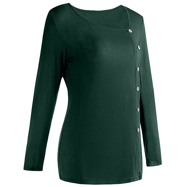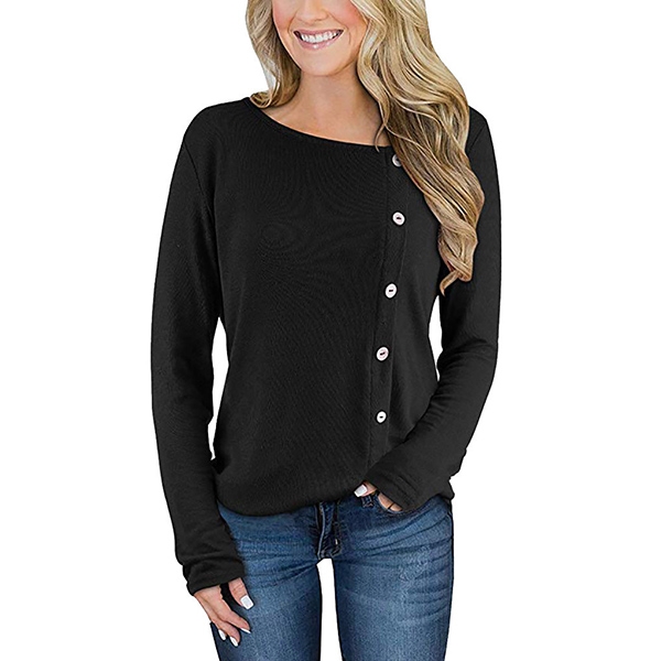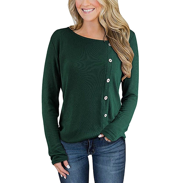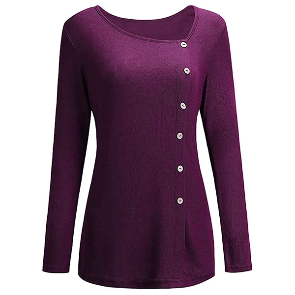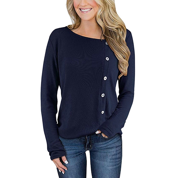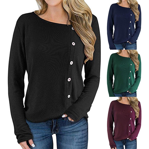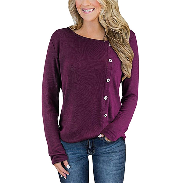 solid color,long sleeve and round neck design,the side buttons design will enrich the design style.