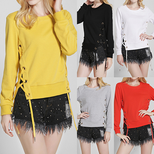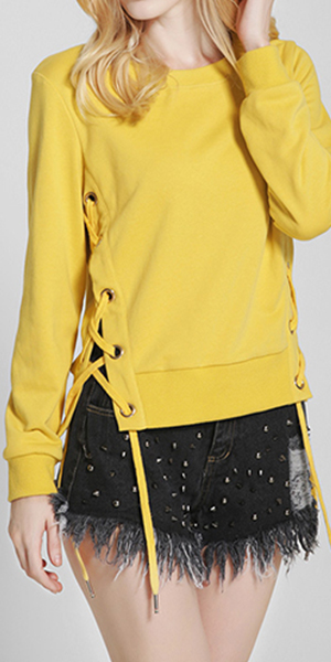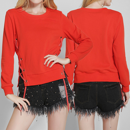Solid color series, with round neck, long sleeve and side lace-up design, this sweatshirt can bring