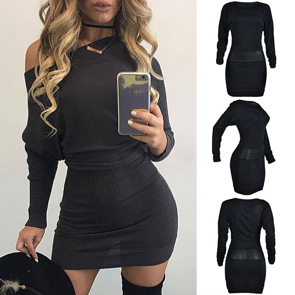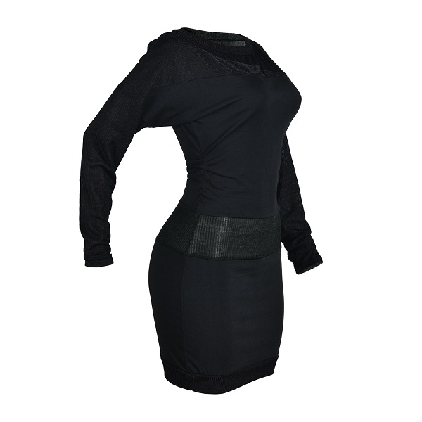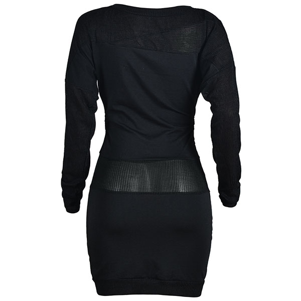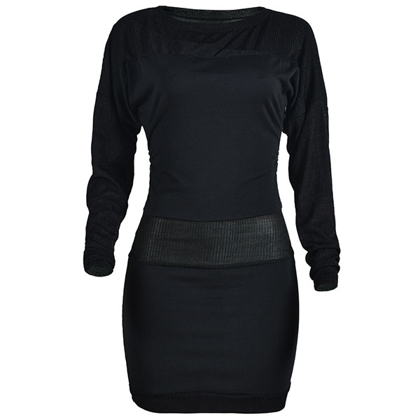 This dress features a classic yet mysterious black tone,finished with long sleeve,round neck and a fit silhouette,