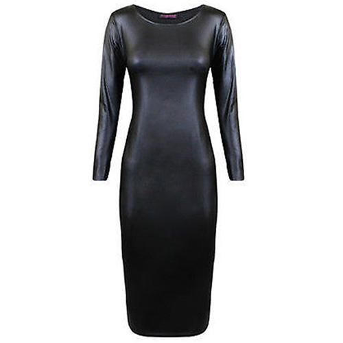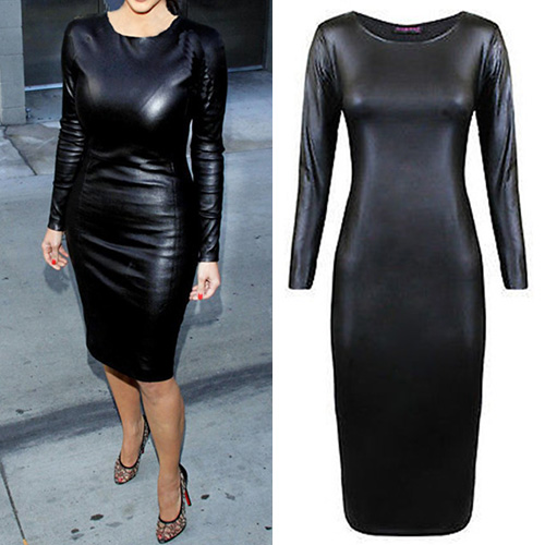 with long sleeve,round neck and a fit silhouette,this PU leather dress is a perfect way to show off your