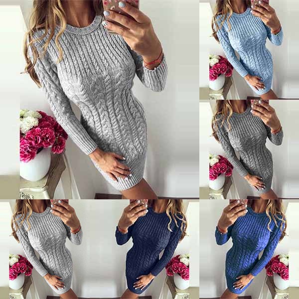 When the weather gets cold,you can clip into this sweater dress. Solid color style,finished with long sleeve,