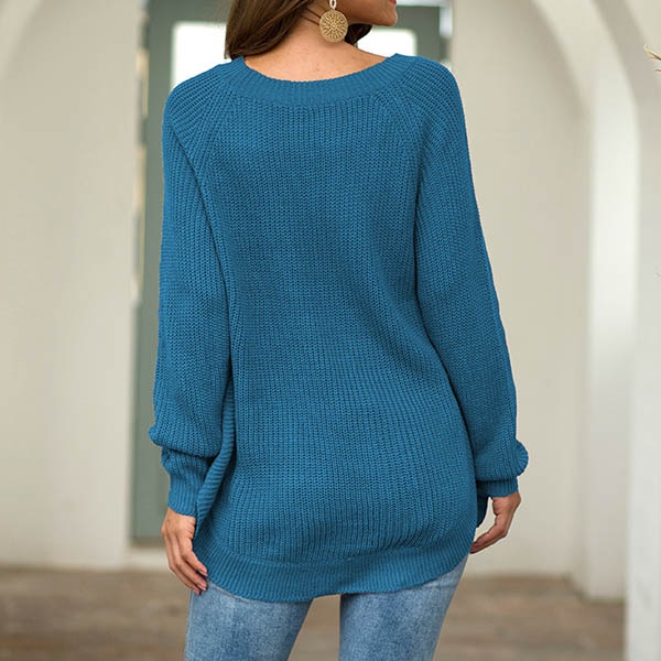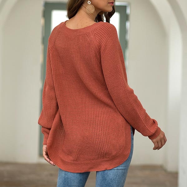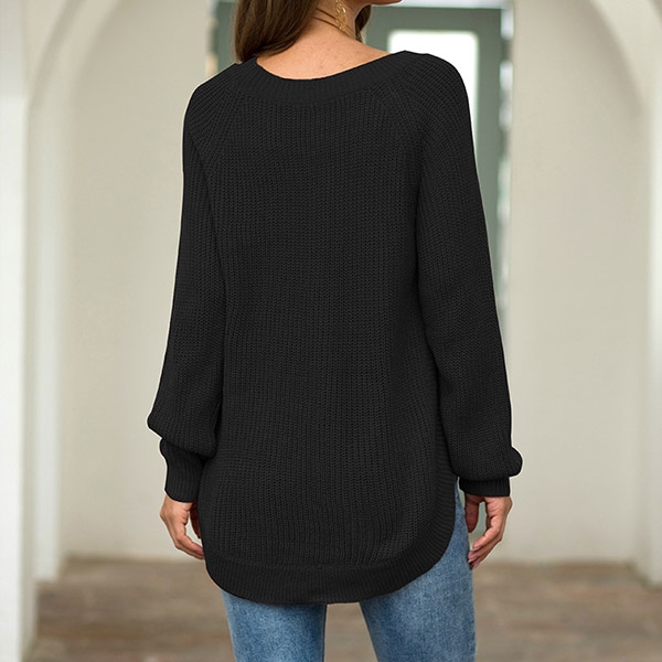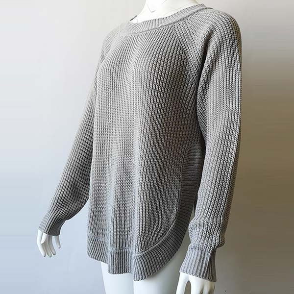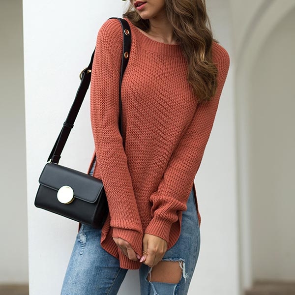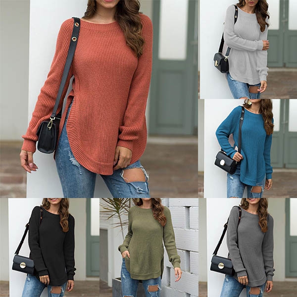 a solid color,with long sleeve,round neck and slit hem design,chic,cozy yet stylish. Simply