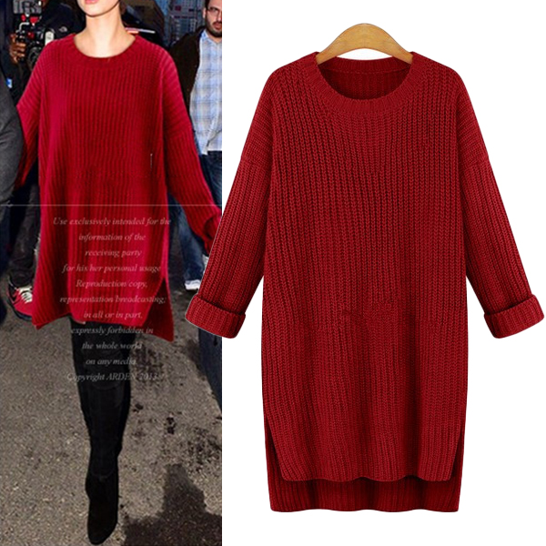 finished with long sleeve,round neck and slit high-low hem,chic and stylish. Paired with your leggings and sweater