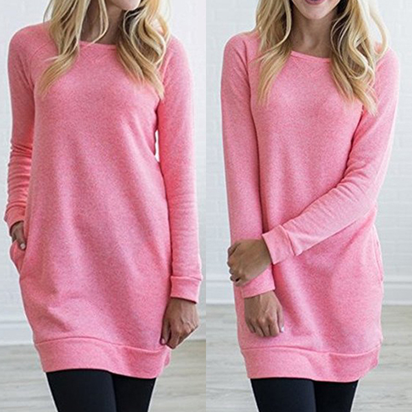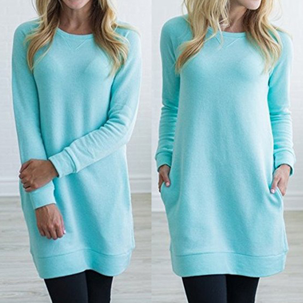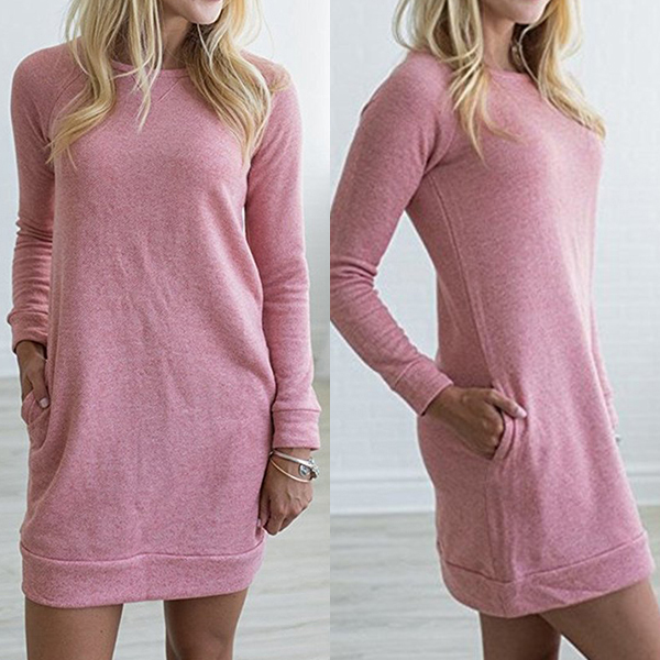 That's why we love this sweatshirt dress. It is styled with a solid color,long sleeve,round neck and a clean
