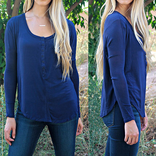 soft cotton material. Solid color style,with long sleeve,round neck and a loose silhouette,