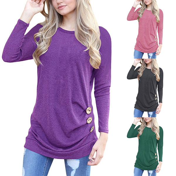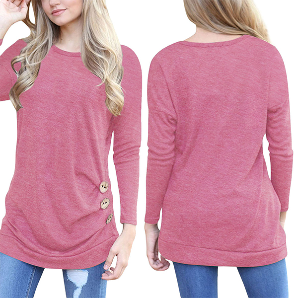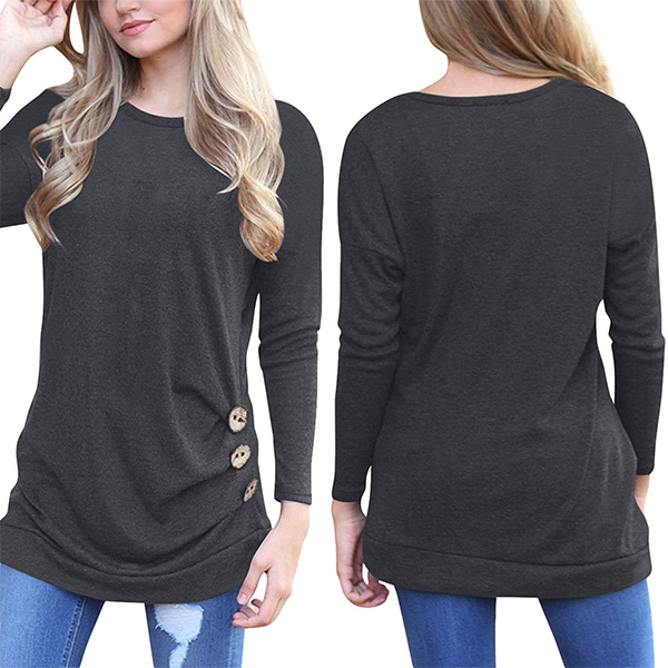 breathable fabric,with long sleeve and round neck design,simple,classic yet stylish. Decorated with buttons details