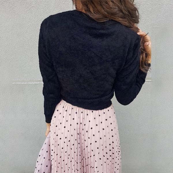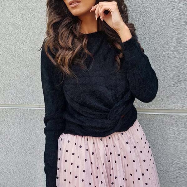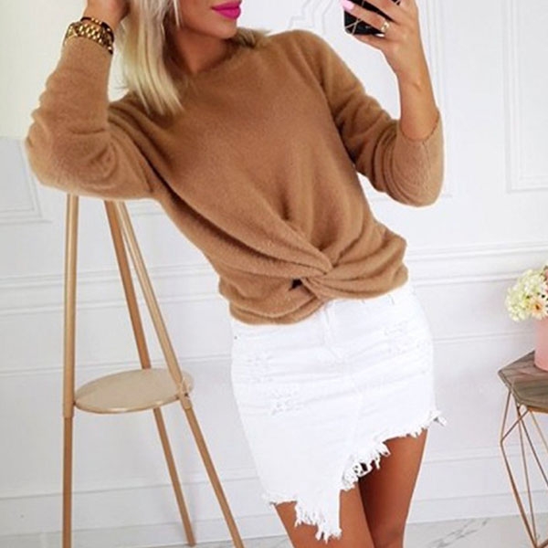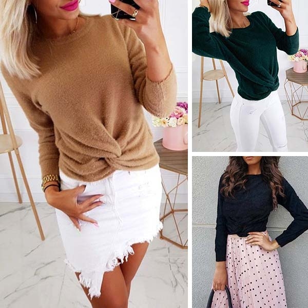 with long sleeve and round neck design,the twisted hem design will enhance its charm.