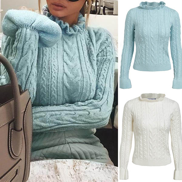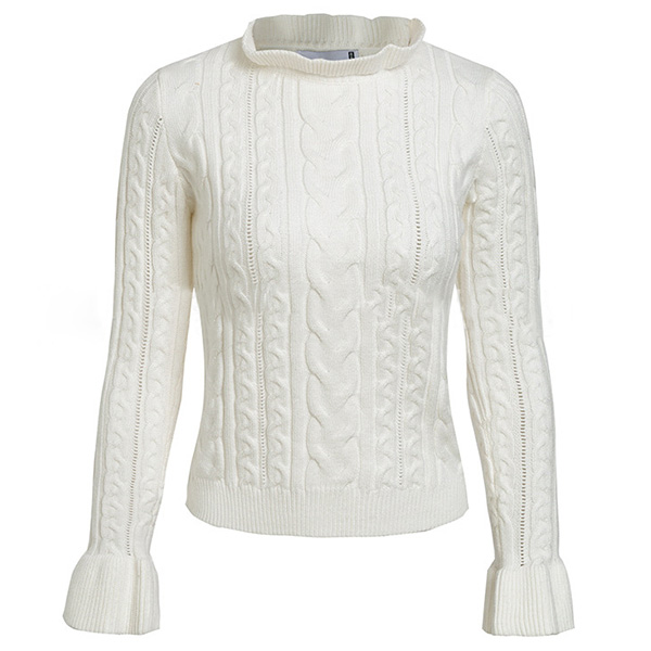Sexy yet playful,this sweater is designed with the popular element like ruffle,which makes it look more attractive.
