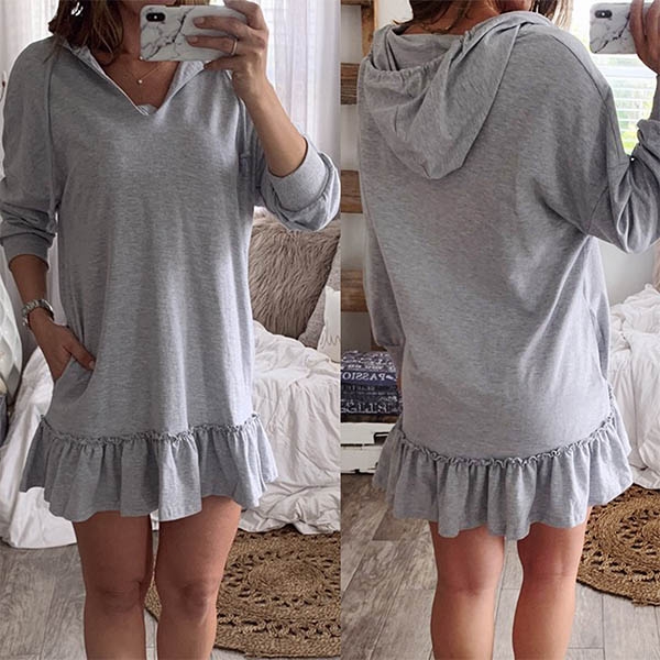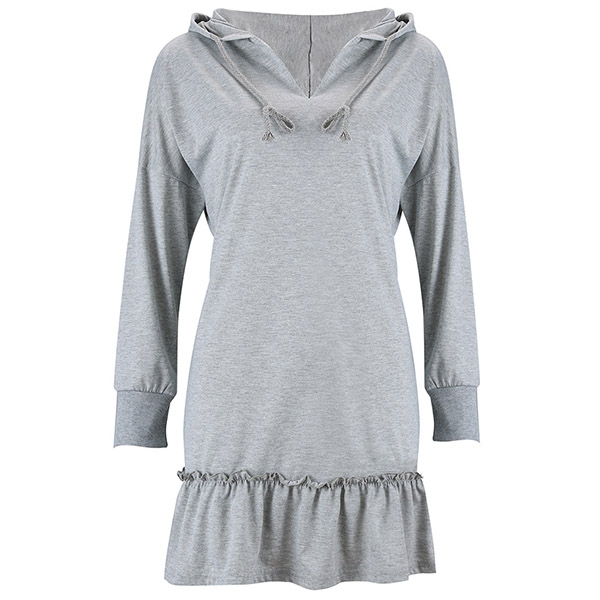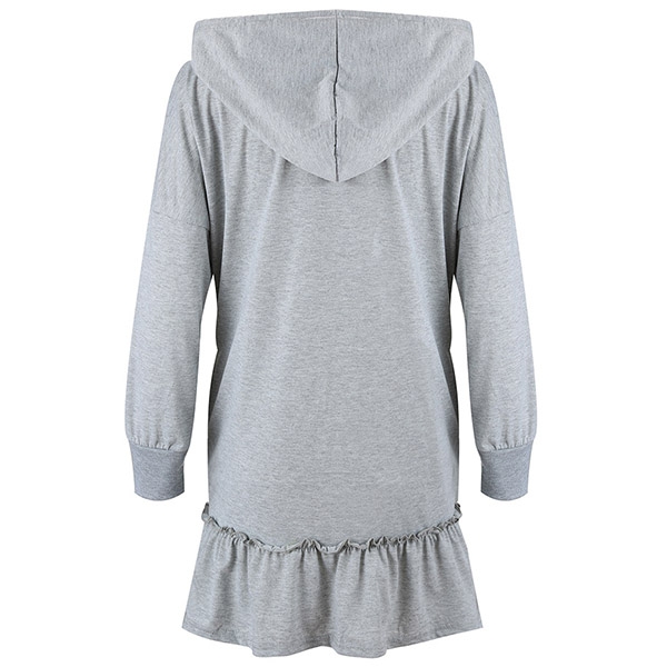 stylish daily look. Solid color style,with long sleeve,hooded silhouette and ruffle hem design,