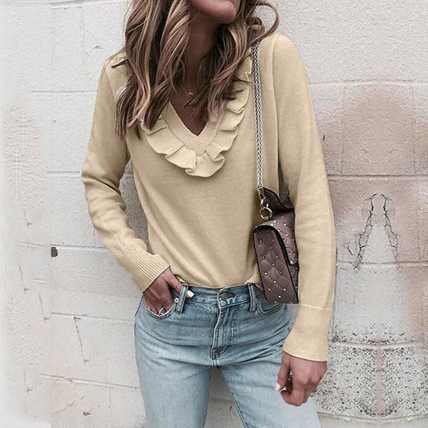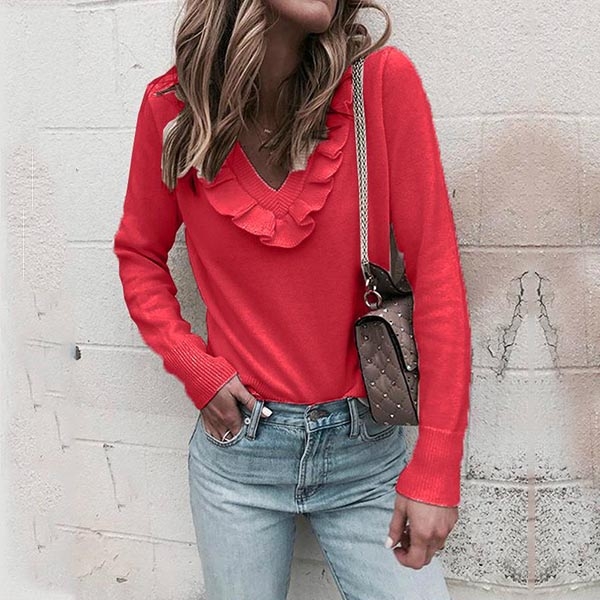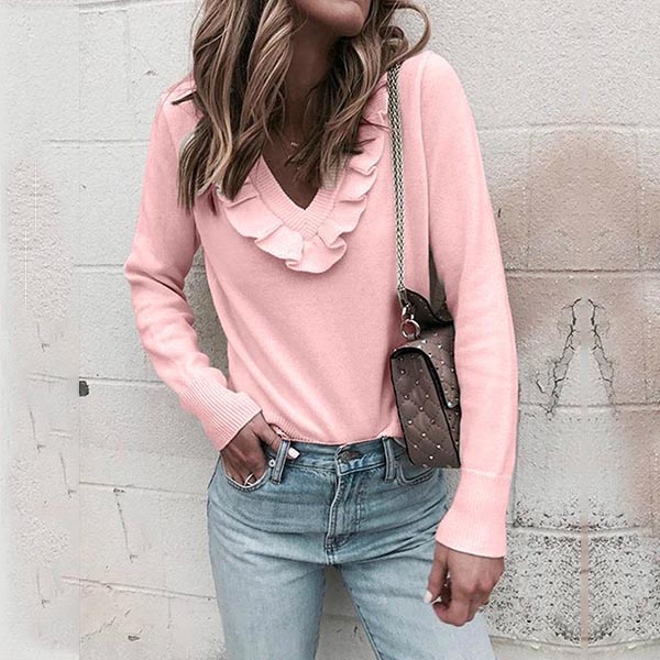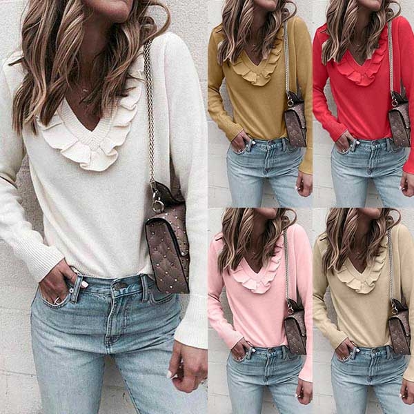 comfortable day,while the v-neck with ruffle design will make this piece look more attractive.